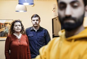 Omar Taha har varit flitig i Finland och arbetat som frisör och betalat skatt. Johanna Ahlberg och Teemu Heiskanen ser en stor potential i hans yrkeskunnande och förstår inte varför han inte får stanna och jobba hos dem. BILD: CATA PORTIN